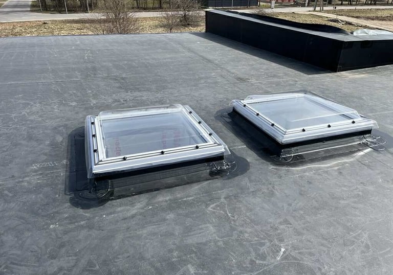 Plokščių stogų įrengimas EPDM danga. Stogų remonto darbai su EPDM ir bitumine danga.